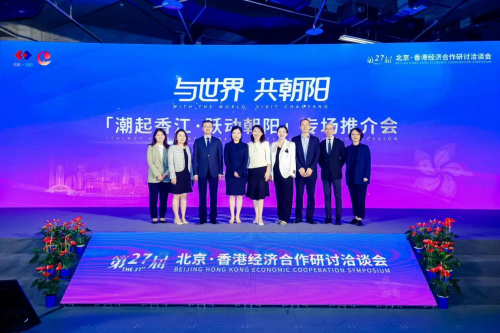 北京市朝阳区作为中国涉外第一区、国际化先行示范区,共吸引3881家港资企业落户,9月20日下午,第二十七届北京· 香港经济合作研讨洽谈会朝阳专场推介会成功举办。活动以“与世界 共朝阳——潮起香江 跃动朝阳”为主题,全面推介朝阳区在发展新质生产力、打造国际化营商环境等方面的优势,并签约优质项目4个,签约总额达44.69亿美元。商务部投资促进事务局局长刘民强,中央港澳工作办公室、国务院港澳事务办公室副局长曹庆涛,中央政府驻港联络办北京联络部主任苏玉军,国务院发展研究中心港澳研究所秘书长杨鑫,北京市投资促进服务中心主任孙尧,中国国际贸易促进委员会北京市分会副主任朱家亮,朝阳区委书记文献,区委常委、常务副区长赵海东,副区长张冠彬,朝阳园管委会主任娄毅翔参加推介会。