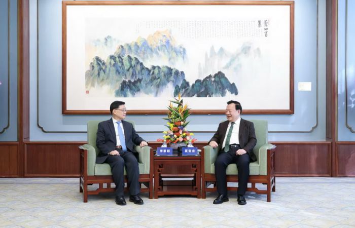 3月5日下午,中央港澳工作办公室主任、国务院港澳事务办公室主任夏宝龙在北京会见来京列席十四届全国人大三次会议开幕会的香港特别行政区行政长官李家超。
